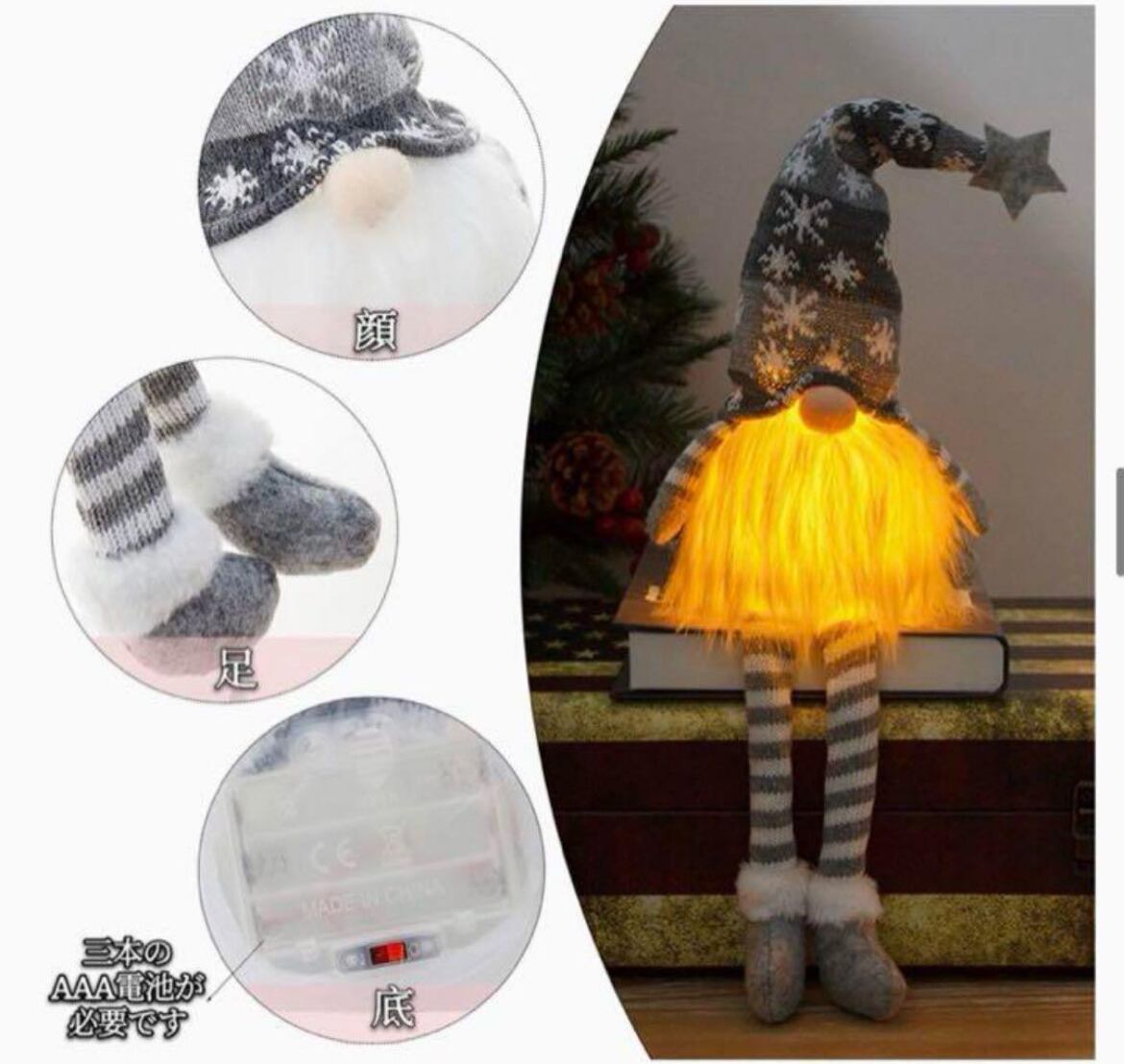 新品 クリスマス サンタ人形 ライト LED 電池式 赤&グレー の2体セット